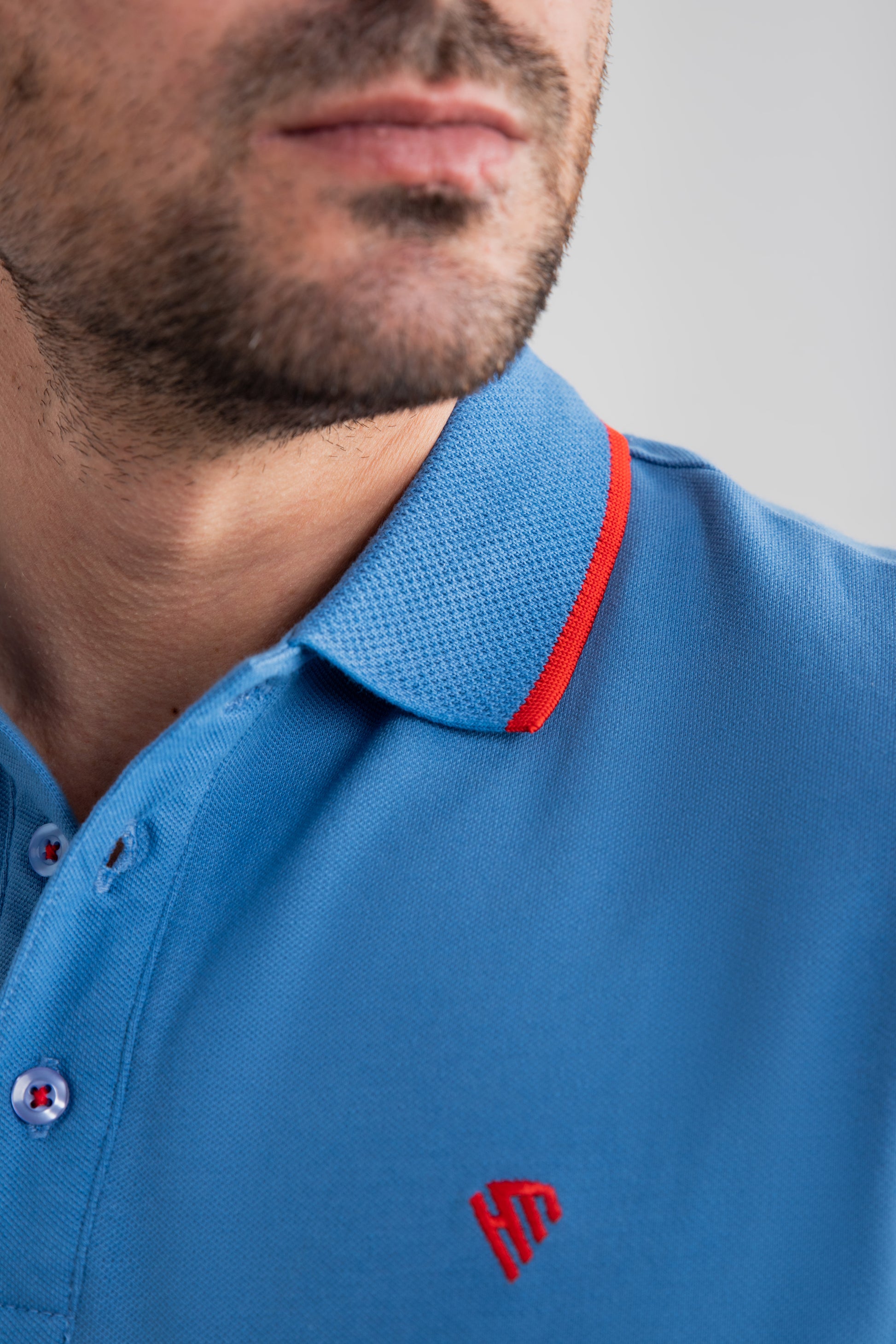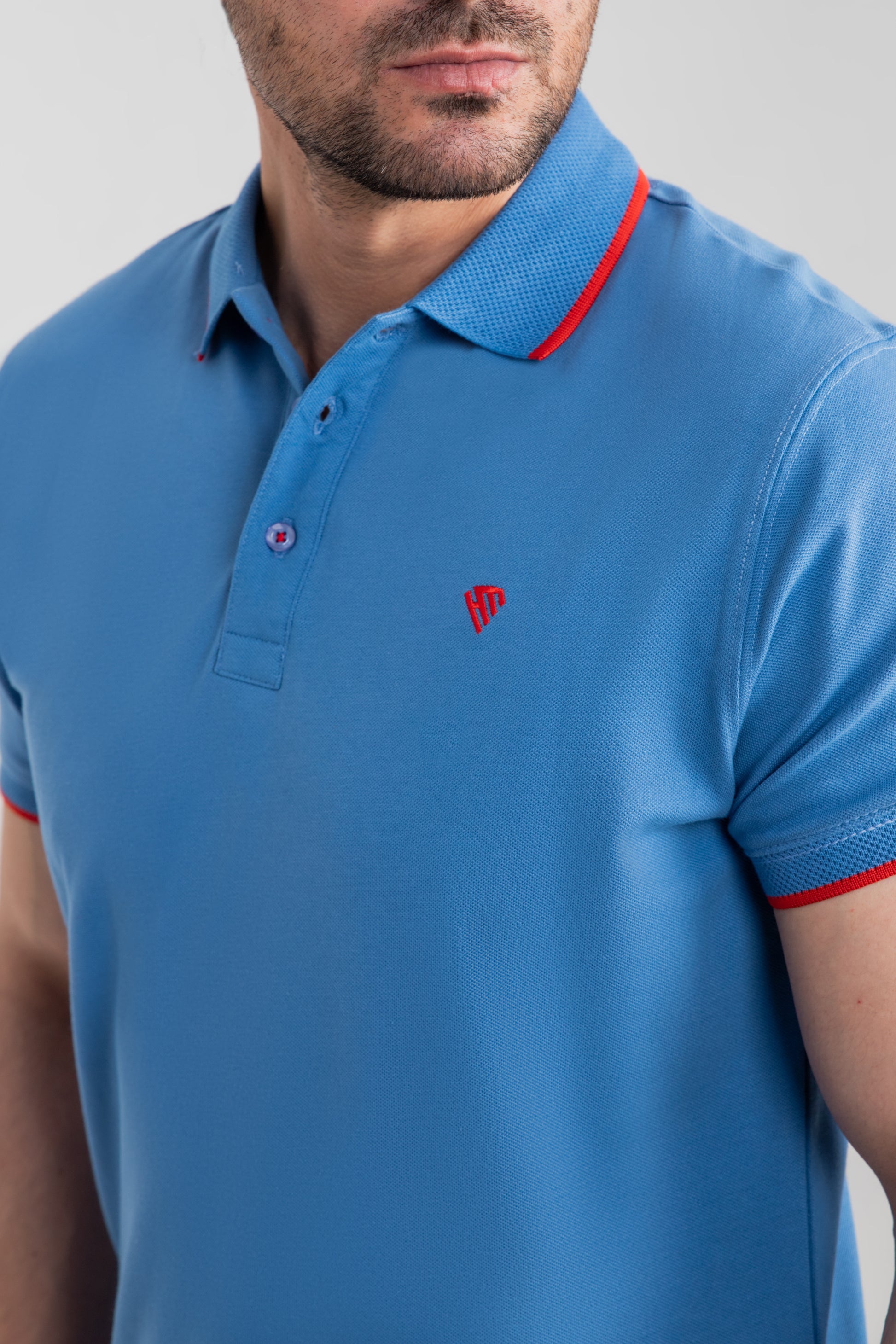 MARINE BLUE JACQUARD COLLAR POLO