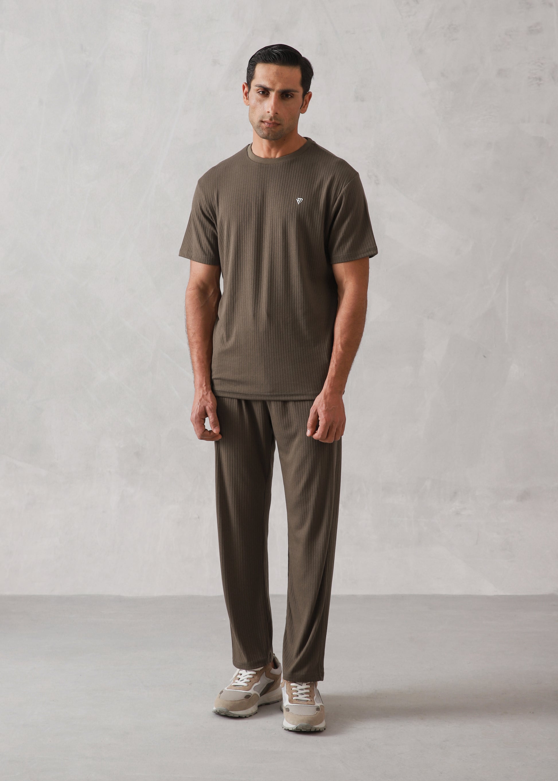 OLIVE BROWN DROP NEEDLE TEXTURED TRACKSUIT
