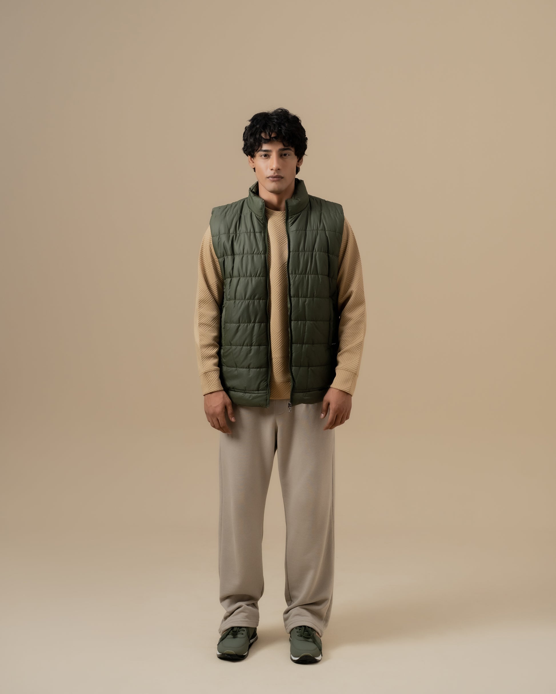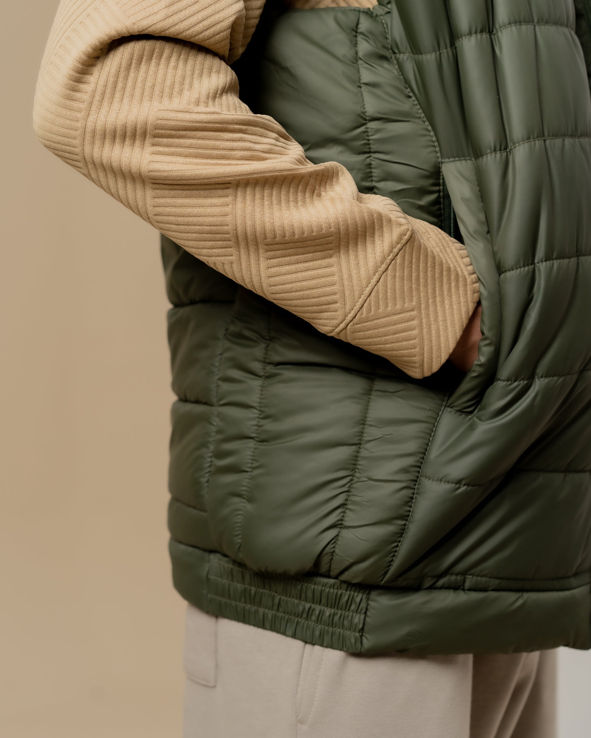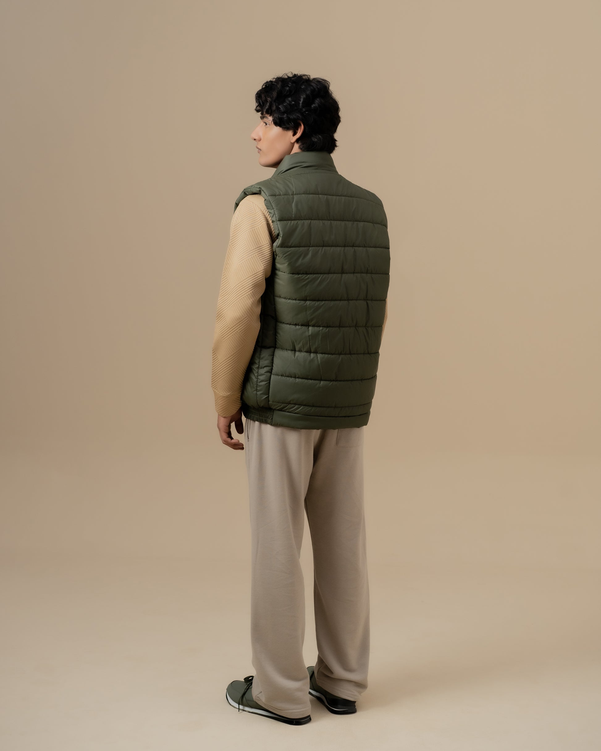OLIVE GREEN SLEEVELESS PUFFER JACKET