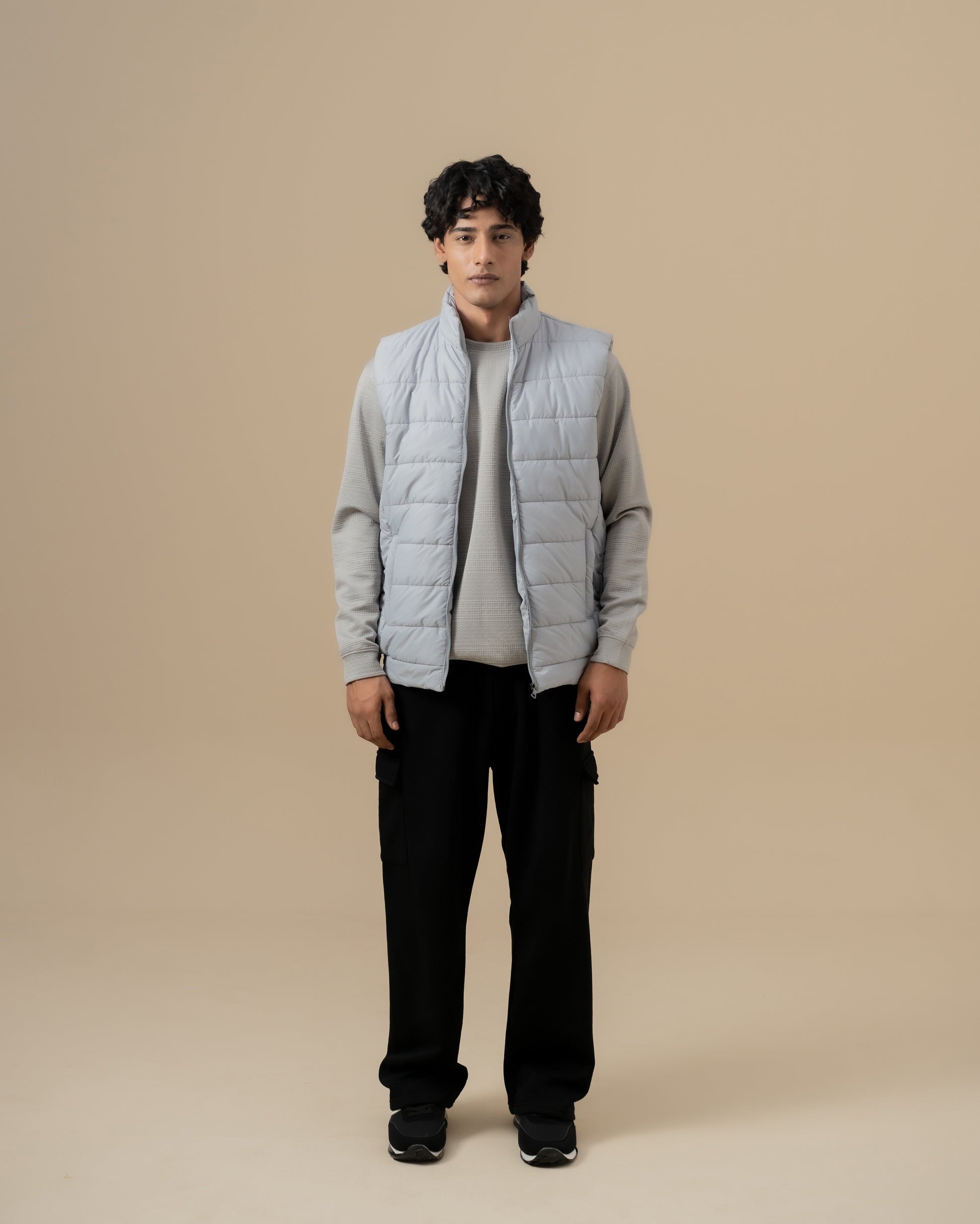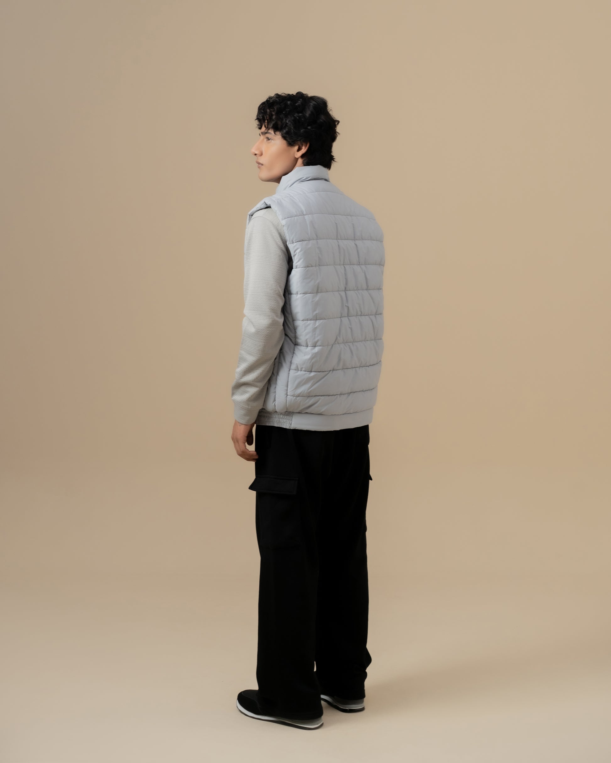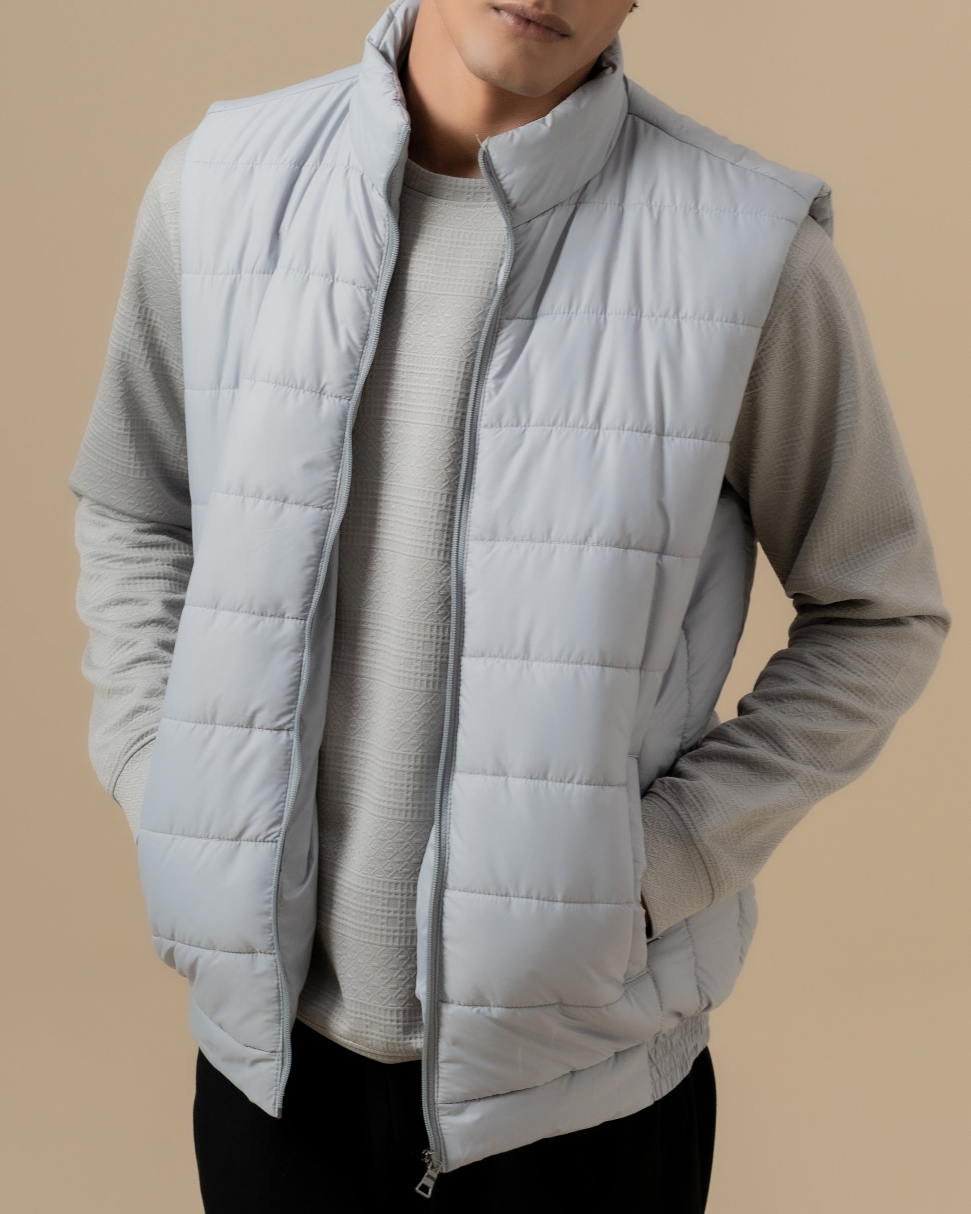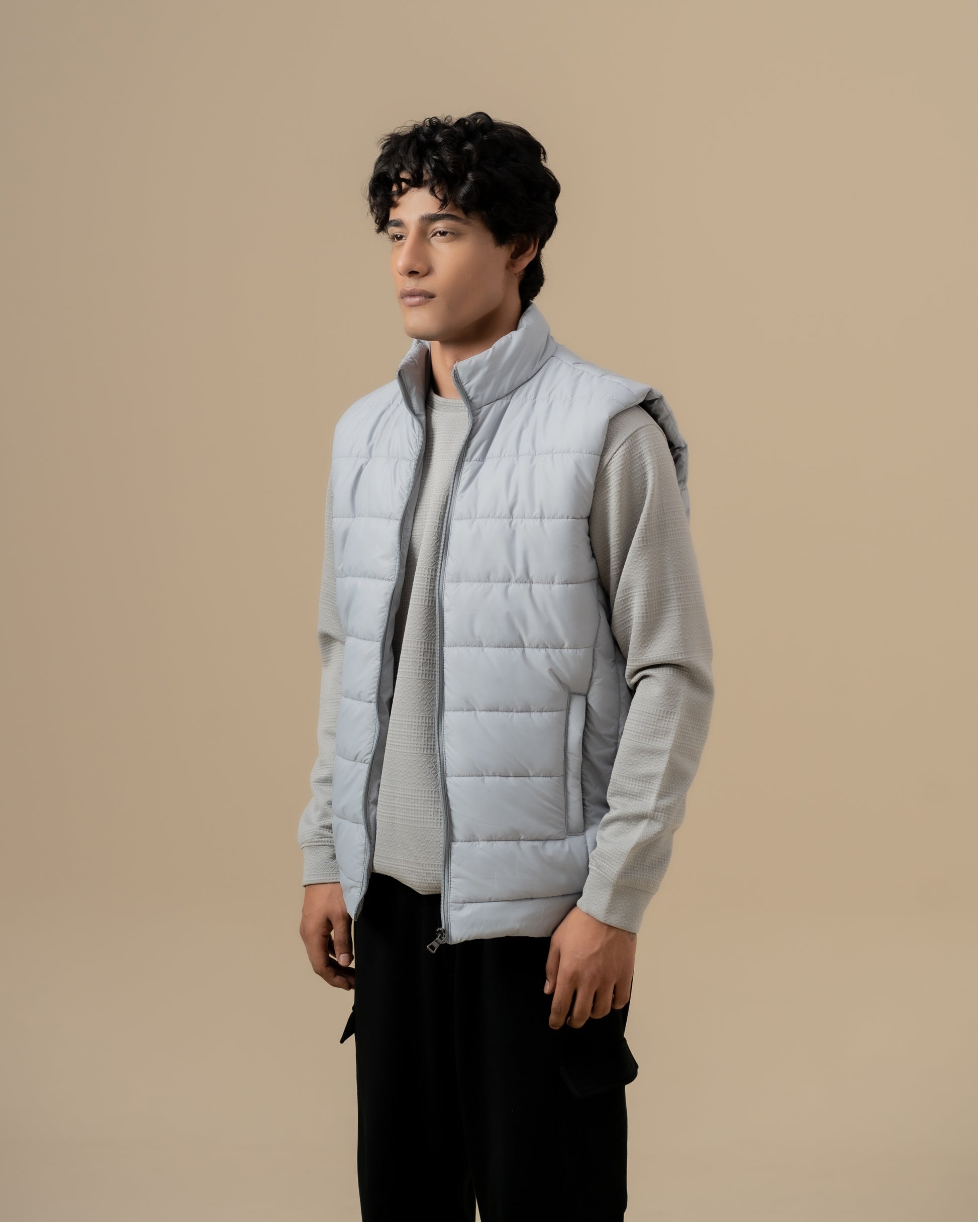 SILVER GREY SLEEVELESS PUFFER JACKET