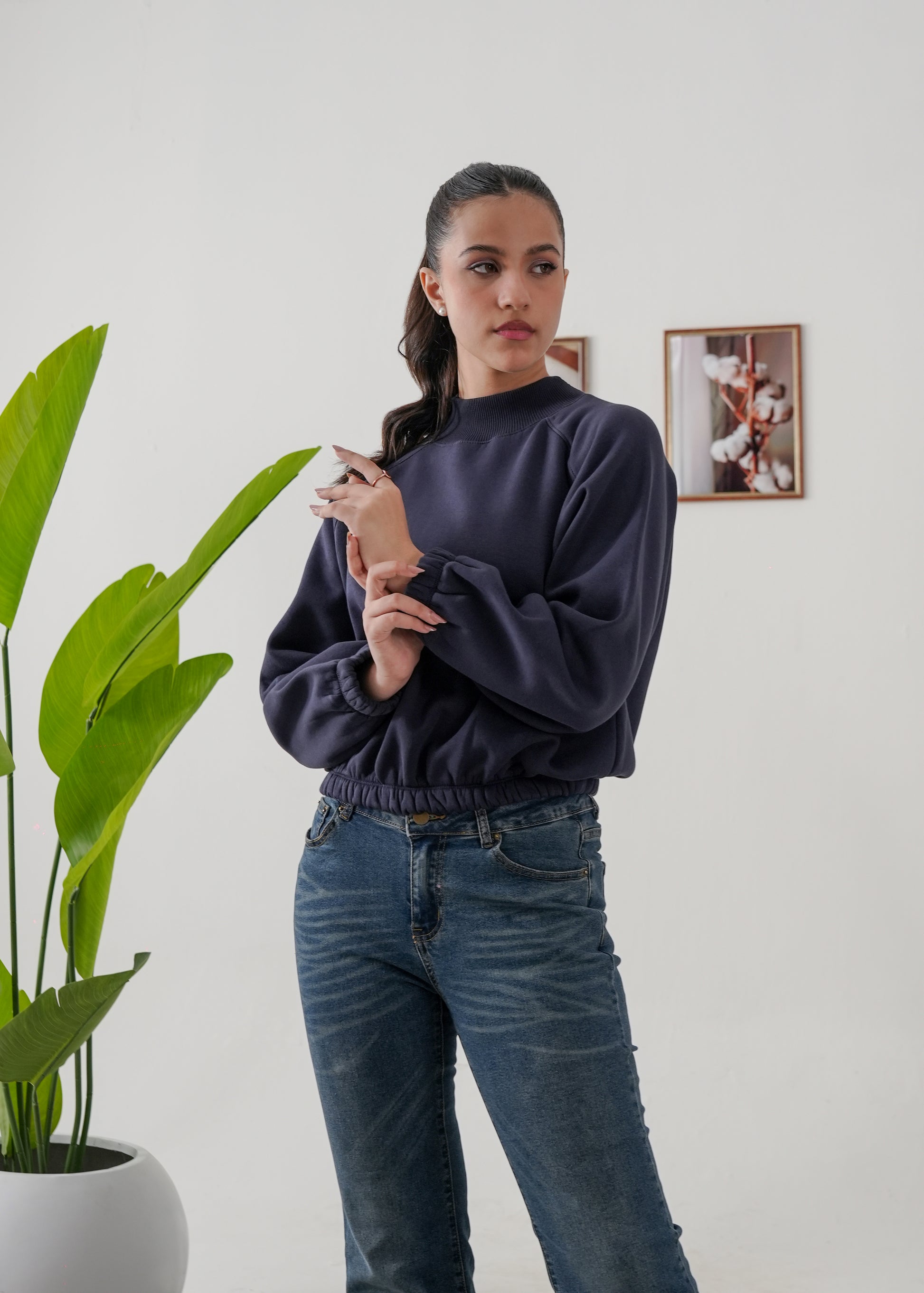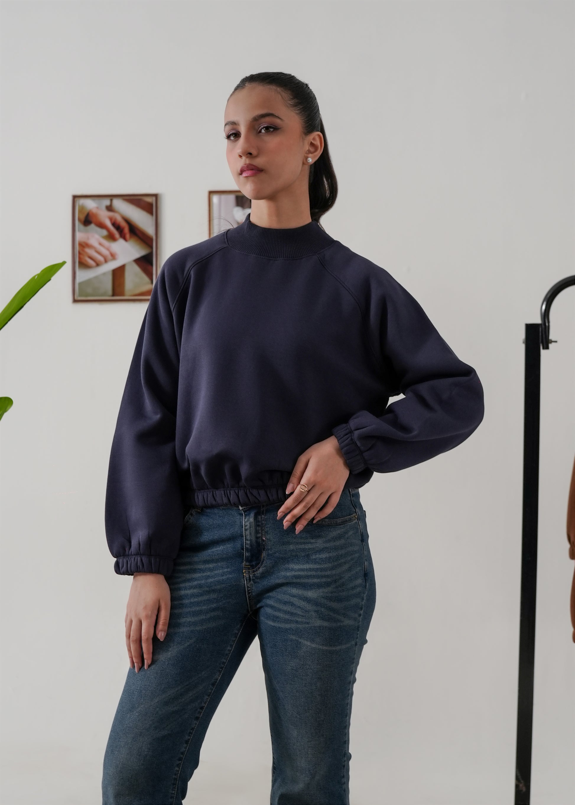 Every detail is shaped with purpose from the relaxed raglan sleeves that move with you, to the cropped elastic hem that adds a flattering modern edge.