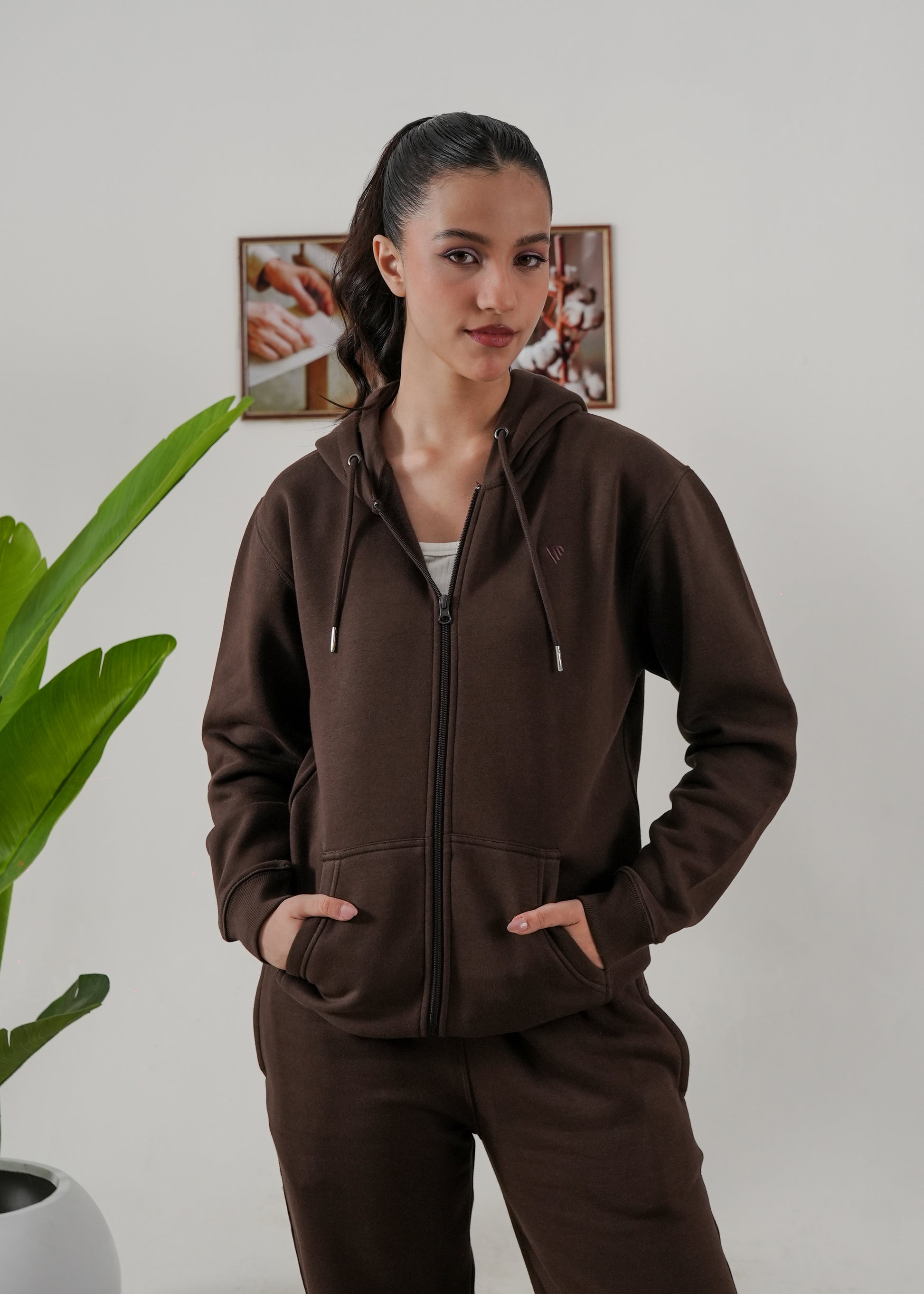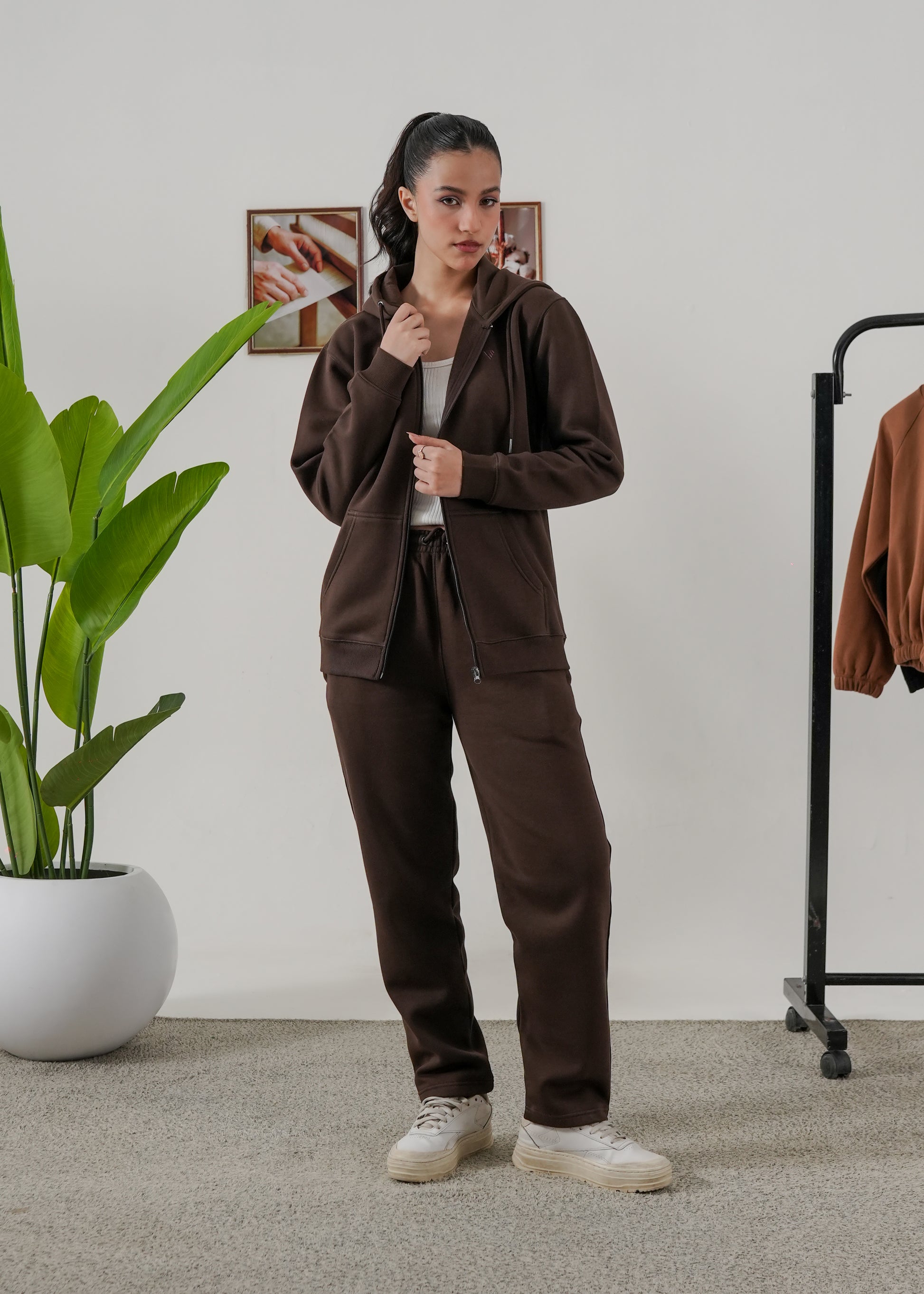 WOMEN PURE COMFORT COTTON FLEECE CHOCOLATE BROWN CORD-SET